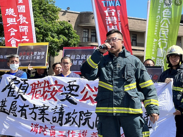 屏東明揚國際科技工廠日前(22日)發生重大火警,火勢伴隨廠房爆炸不斷擴大,延燒近28小時,造成首批進入現場救災的4名消防隊員不幸離世,再次將消防局的預算及消防員福利議題推上風口浪尖。對此,消防團體提出,將在9日發起「夜宿凱道」抗議活動,提出組成消防員工會等需求,卻遭內政部長林右昌以「消防員屬公務人員」為由拒絕。